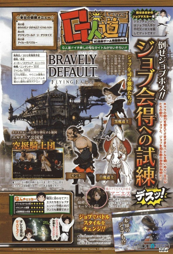 Os traemos nuevos datos del nuevo RPG de Square Enix Bravely Default: Flying Fairy, sacados directamente de un scan de la revista semanal Jump, donde nos enteramos de una curiosidad referente al sistema de trabajo implementado en el juego.
