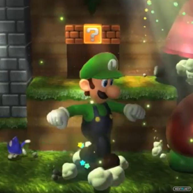 Diversos powerups también son mostrados, algunos conocidos como el bloque que dispara bolas de cañón, el bloque de monedas (que debutó en Super Mario 3D Land), bolas de béisbol, bloque volador, patín de hielo, planta carnívora, lanzamientos de caparazón, cerezas multiplicadoras… y otros inéditos, como el bloque linterna, ideal para derrotar a Boos. Además, vemos como se consigue el disfraz de Goomba: al ser pisados, algunos dejarán caer… su cabeza, que utilizará nuestro personaje para pasar inadvertido entre estos champiñones malignos.