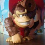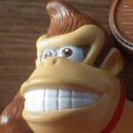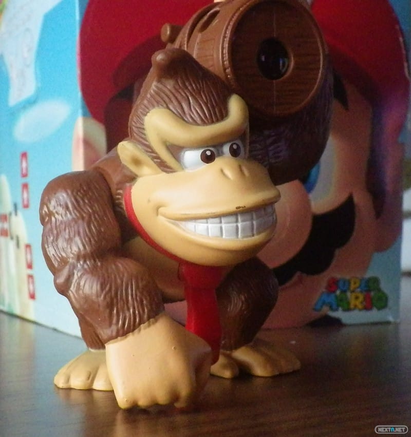 La figura que vimos el otro día tenía algo especial, un par de imanes que creaban un efecto bastante curioso al girar la moneda incluida en el juguete. El Donkey Kong que os mostraremos hoy no se conforma con menos, poseyendo una linterna que proyecta una luz anaranjada con hasta tres figuras diferentes que se seleccionan con un dial, siendo estas las iniciales DK, la cara del famoso simio y unas cuantas de sus preciadas bananas.