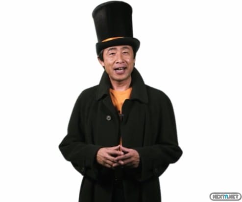 - El anuncio viene por parte de un Shibata disfrazado de Layton (recordad que en agosto lo vimos de Phoenix Wright)