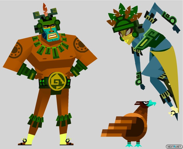 El siguiente es ‘Warrior’s Might’ (lit. Poderío del Guerrero), un traje inspirado en los guerreros Maya. Éste funciona con el nuevo poder de Guacamelee: Super Turbo Championship Edition, Intenso. Hablaremos más sobre Intenso en otra ocasión. Por ahora, sólo diremos que el skin Warrior’s Might y el poder Intenso son como los nachso y la salsa… no espera, el guacamole.»