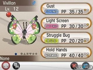 Hace unas horas, y gracias a todos los jugadores que se dedicaron a intercambiar Pokémon como locos, se consiguió llegar a la grandiosa cifra de 100 millones de intercambios, y poco después, está disponible para descargar el nuevo Vivillon hasta el día 31 de julio. Para obtenerlo, sólo tendréis que acceder al Regalo Misterioso del menú principal y descargarlo sin problemas. Este Vivillon estará al nivel 12 y tendrá los movimientos Tornado, Pantalla de Luz, Estoicismo y uno nuevo, Manos Juntas, que no tiene realmente ningún efecto.