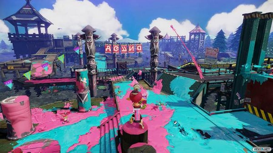 ¿No te ha pasado que vas por la calle despues de llover y vas esquivando charcos? Pues en Splatoon, lo mismo. Camina sobre tu tinta y evita la de otro color o acabarás manchandote de lo que no toca.