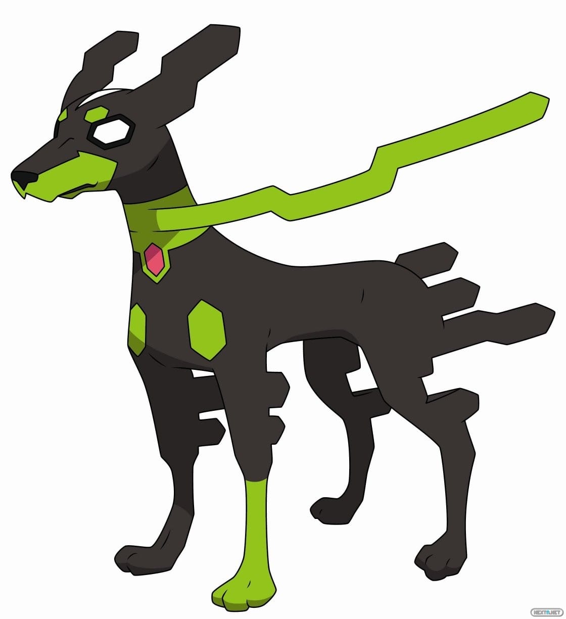Zygarde Forma 10%: Zygarde empieza a tomar una forma similar a la de un animal -un galgo, concretamente-. El Pokémon llega a este estado cuando es capaz de reunir un 10% del total de células, resultando así en una forma capaz de desplazarse a cuatro patas y a una velocidad de 100 kilómetros por hora. Además, ya puede defenderse con su cuerpo, y no dudará en usar sus colmillos y sus garras para atacar a sus rivales.