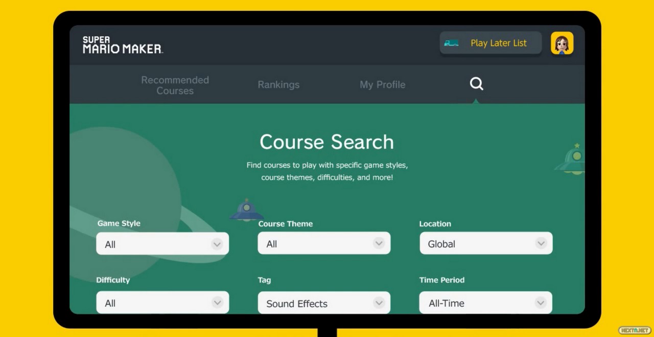 Filtros de todo tipo que abarcan desde buscar niveles con desplazamiento automático hasta aquellos que cuenten con efectos sonoros nos permitirán elegir todo aquello que se nos antoje y se amolde más a lo que queremos jugar en nuestra Wii U. Gracias a la versión móvil con la que cuenta esta página, si vamos por la calle y encontramos uno de nuestro gusto, podemos marcarlo como favorito para, ya en el hogar, darle caña a los mandos de nuestra consola.