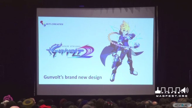 Este fin de semana se ha celebrado en Maryland el MAGFest (Music and Gaming Festival), e Inti Creates ha aprovechado la oportunidad para mostrar al público las primeras imágenes directas de Azure Striker Gunvolt 2. Lo primero que destaca es el nuevo diseño de Gunvolt. Según han comentado, han cambiado todos los sprites del personaje para lograrlo.