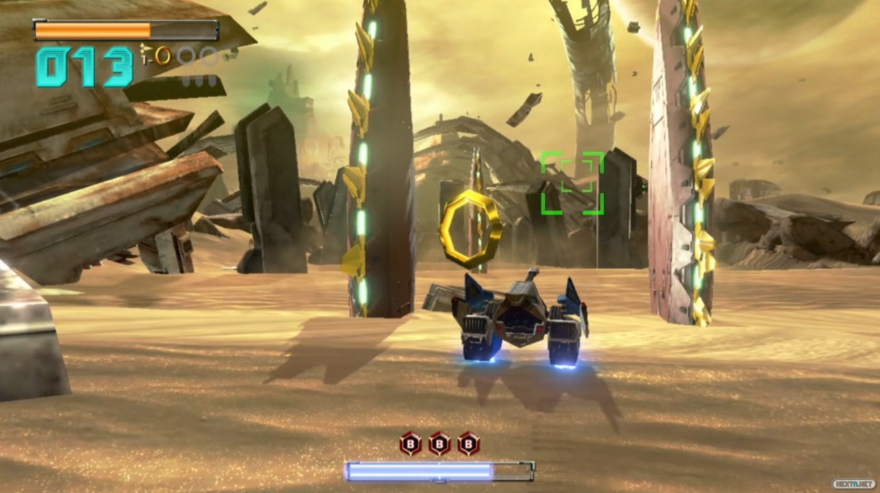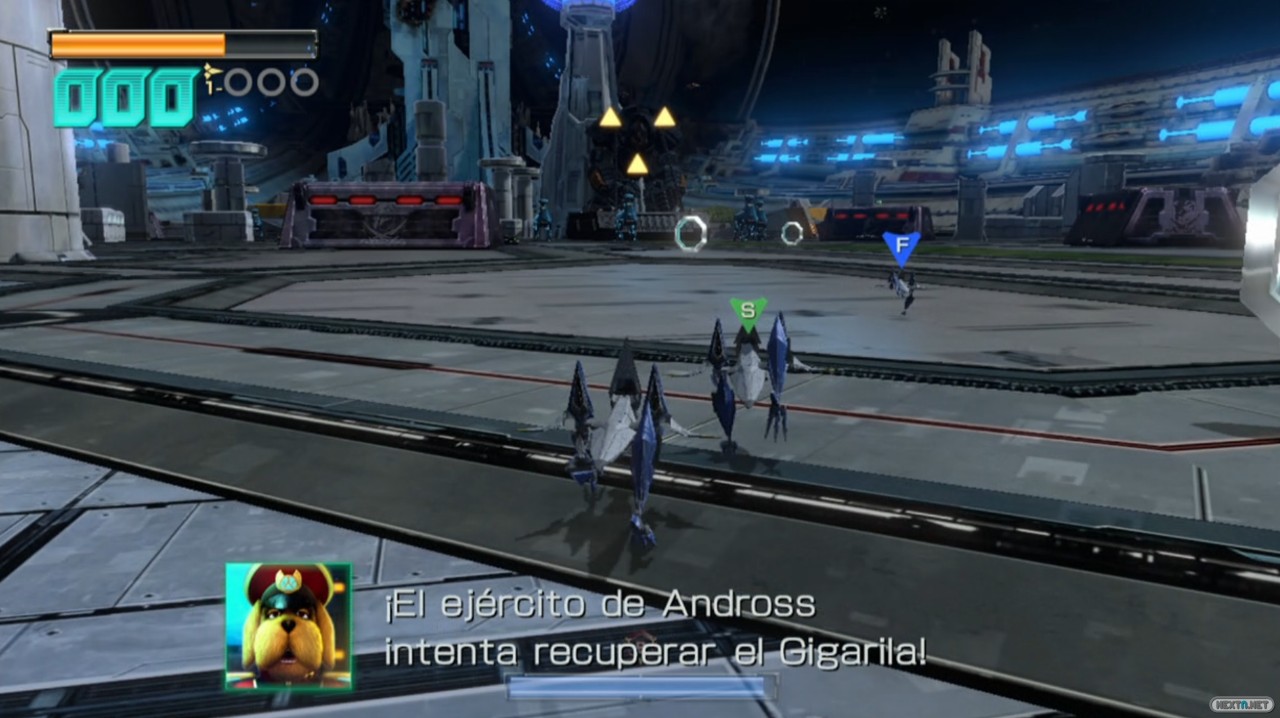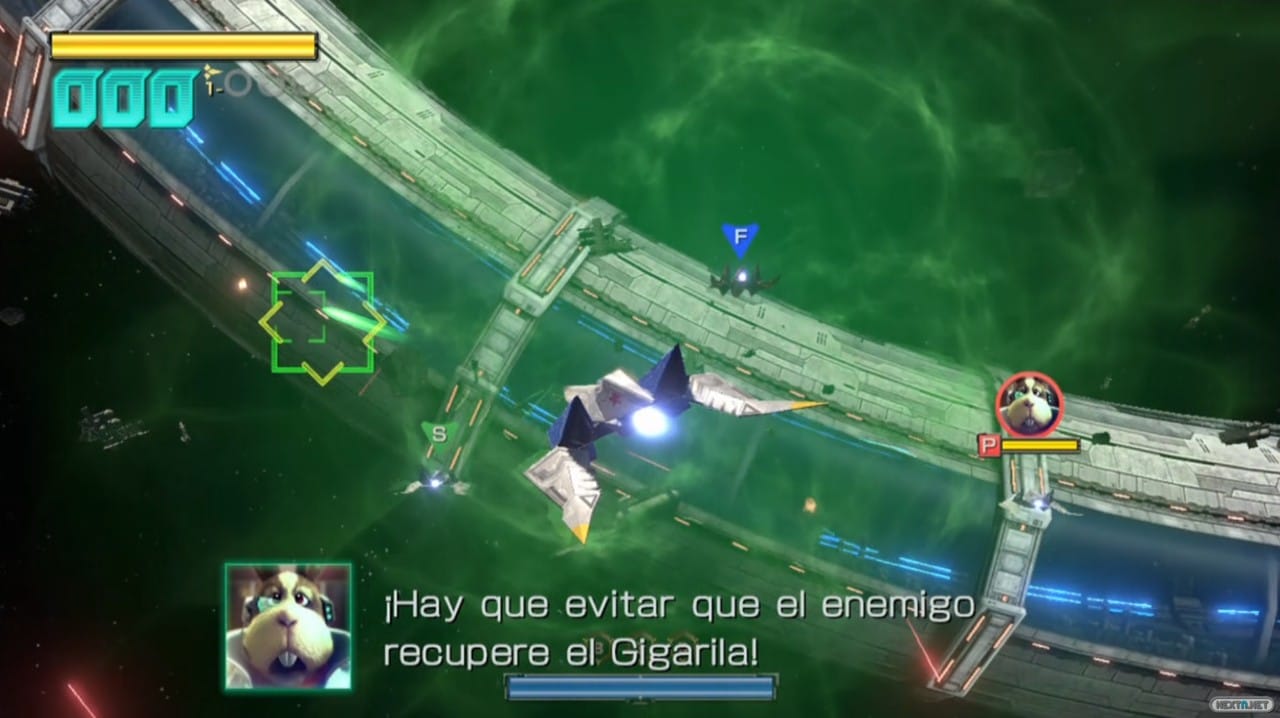 Por cierto, y como punto final con la duración: si fracasas una misión un determinado número de veces, ROB te enviará un paquete especial con un emblema dorado del logotipo de Star Fox, algo que te advertirá el propio juego. Esto es como el mapache dorado de Super Mario 3D World, por ejemplo, pues le conferirá un brillo dorado a tu nave haciéndola completamente indestructible. En ese caso, solo podrás perder la misión si se trata de una batalla a contrarreloj, pero superarás el nivel sin mucha complicación, sin guardar la puntuación que obtengas y pasando al siguiente nivel. Por supuesto, esto es completamente opcional, puedes esquivar ese emblema dorado, y te recomendamos que así lo hagas.
