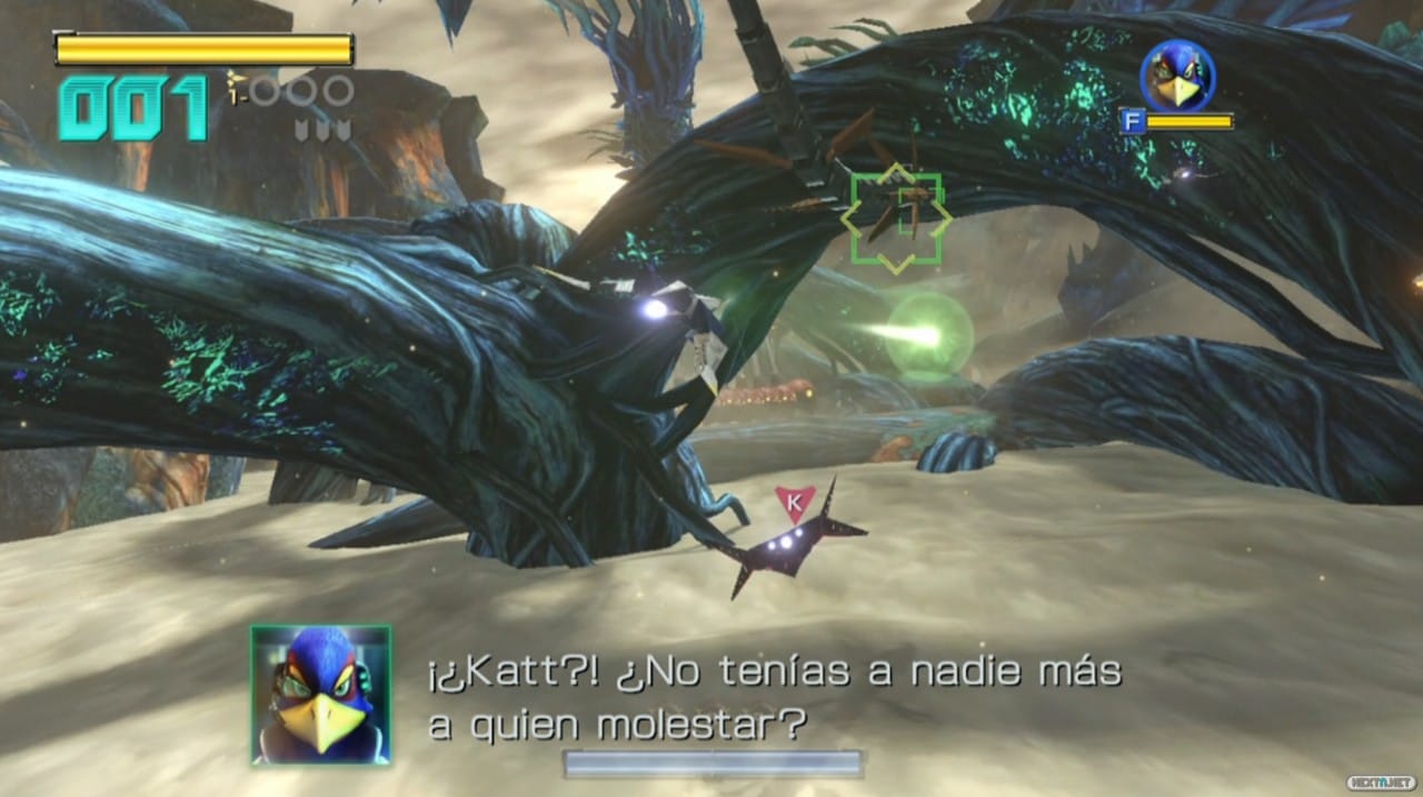Seguimos con jugabilidad. ¿Es divertido jugar a Star Fox Zero? Decir que lo he disfrutado mucho, pero sobre todo en el modo cooperativo con mi hijo. En este modo, los controles se reparten entre dos jugadores, utilizando uno de ellos el Wii U GamePad para todo lo que se refiere al control por movimiento e incluso apuntado de la nave, mientras que el otro jugador maneja el vehículo en cuestión con un Mando Pro de Wii U o la combinación de Wiimote + Nunchuk, y un tipo de disparo que no puede controlarse más allá de la altura. Este vídeo os dejará claro como funciona: