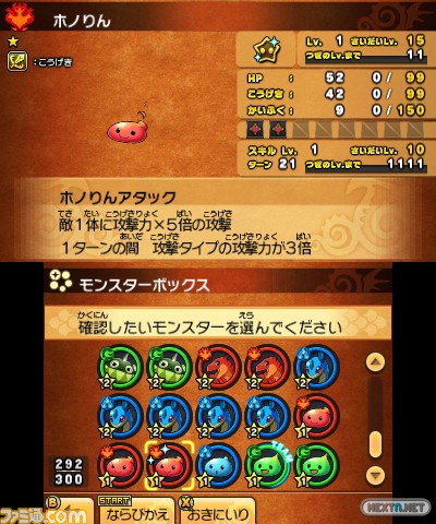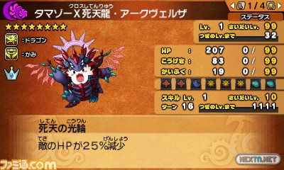 Aparte de estas recompensas, el estudio nipón ha revelado un nuevo tipo de monstruo llamado «Genius» (Genio), y la posibilidad de hacernos con algunos especímenes ultra raros durante nuestra aventura. Lo que hará especial a estos monstruos es su poder, muy superior a lo habitual, además de unas estadísticas fuera de lo normal. ¡Y ojo si se quieren conservar estos monstruos! Al parecer pueden sintetizarse con otras criaturas, pero durante el proceso perderá el «Genius» por el camino. Por cierto, este tipo es fácil de identificar si nos fijamos en un icono especial en la parte inferior derecha de la pantalla superior (veréis una especie de estrella multicolor en la que pone «Genius»).