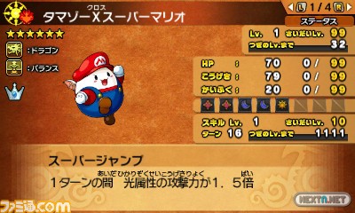 - Puzzle & Dragons Super Mario Bros. Edition: Tamazo versión Super Mario, con la habilidad «Super Salto», que aumentará por 1,5 el poder de ataque del atributo Luz durante un turno.
