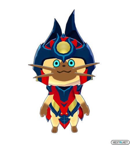 Nada más terminar el tráiler, vemos Nabiru, el «extraño» felyne acompañante, vistiendo una armadura de Rathalos, y justo a continuación lo vemos equipado con la armadura de Glavenus, uno de los cuatro monstruos insignia de Monster Hunter Generations, y el combo de espada y escudo de este terrible Wyvern. Acerca de esto último, parece que se obtendrá si juegas a Monster Hunter Stories con una partida guardada de Monster Hunter X (Generations, por estos lares). Recordemos que estos materiales ya pudieron verse en mayo de este año.
