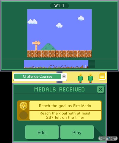 Hay gente que no disfruta diseñando niveles, que prefiere no abandonar el lado del jugador. Simplemente se siente más a gusto en esta parte, completando cada uno de los niveles que los creadores diseñaron, descubriendo sus secretos. Tranquilo si eres de esos, pues así de primeras vas a tener a tu disposición ni más ni menos que 100 niveles creados por expertos maestros de Nintendo en el modo Desafío Super Mario. La gracia de este modo también está en los retos que se han incluido en estos niveles: siempre tendrás dos por cumplir, y cuando lo superes, podrás conocer el segundo. ¿Un ejemplo de reto? Llegar al final de un nivel con un Bloque P en tus manos de fontanero.