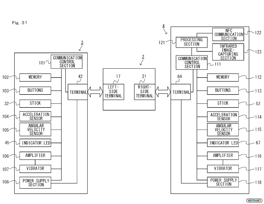 La patente muestra, además, distintas posibles versiones de Joy-Con para Switch con crucetas o botones en lugar de un joystick. Pero no son simples mandos inalámbricos con una cantidad variable de botones que se pueden deslizar en la estructura principal de Switch: cada pequeño Joy-Con monta un giróscopo, acelerómetro y vibración independientes. Y además el derecho trae lector NFC y una pequeña cámara de infrarrojos según el diagrama de bloques, pero se aclara que podría ser también ser de luz visible.