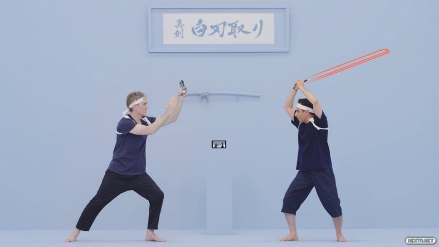 Como decíamos, se trata de una experiencia dividida en pequeñas partes. Todos sus minijuegos son rápidos y no requieren del uso de complicadas combinaciones de botones. Sólo hace falta tener un Joy-Con en la mano y hacer alguna que otra pulsación mientras mueves el mandito, o ni siquiera eso. Por poner un ejemplo, uno de estos minijuegos consistía en un entrenamiento de kendo, con uno de los jugadores dando un espadazo vertical y ficticio tras una señal y otro tratando de detenerlo dando una palmada con las dos manos. Es una idea tan sencilla que engancha. Sin darte cuenta, acabas sintiéndote sobre un tatami, totalmente concentrado en cada pequeño gesto, mirada o movimiento de tu rival para reaccionar y detener su espada de madera; o tratando de engañarlo para asestarle el golpe. Simplísimo, pero efectivo.