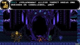 Como decía al comienzo, esta campaña es una precuela del Shovel Knight original, rebautizado ahora con el subtítulo Shovel of Hope. El objetivo de esta historia es conocer qué pasó antes de que el caballero de la guadaña se convirtiese en el guardián de la Finca de Liches, en aquel jefe que tan famoso se hizo por su combate, por sus movimientos, por parecerse al ser que toda persona teme. Y todo comienza con la intención de La Hechicera de construir una orden de caballeros; para lo que te requiere a ti, ya en la piel de Specter Knight, bajo la responsabilidad de ser el encargado de fichar a los que serán miembros de la Orden Sin Cuartel.