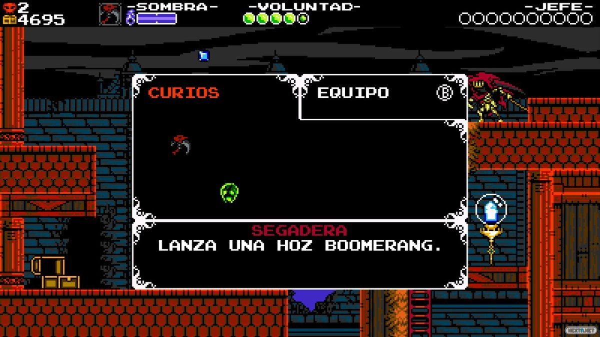 No todo se ciñe a esto. Como ocurriera con otros protagonistas, el caballero de la guadaña cuenta con sus propios power-ups, denominados Birrias, y armaduras. Hay una gama bastante amplia, pero su uso puede convertir situaciones complejas en un completo paseo, sobre todo por cierta habilidad que permite ir directo hacia un enemigo independientemente de lo que nos separe de él. Parece que aquí se ha dejado un poco de lado el ejercicio de equilibrio, aunque no quita que haya combinaciones que lo hagan endiabladamente divertido.