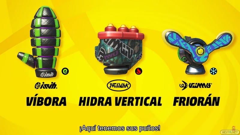 A los siete que ya conocíamos, hay que sumar los tres últimos, presentados en la Nintendo Direct de ARMS: Kid Cobra, Byte y Bark y Twintelle. Esto suma un total de 10 personajes en el juego, todos con su correspondiente juego de 3 puños y su propio escenario. Puede parecer un número bajo, pero creednos que son más que suficientes, pues entre que cada uno cuenta con un estilo de lucha y movimientos diferente, y se pueden combinar los puños de distinta forma… vas a echarle unas buenas horas hasta que aprendas a dominarlos a todos. A continuación, te los presentamos, con sus correspondientes puños y escenario.