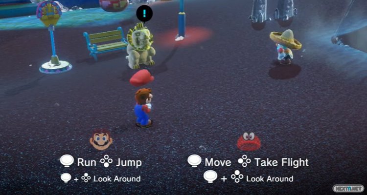 En su lugar, el segundo jugador podrá manejar a Cappy, la gorra que permite al fontanero manejar a cualquier ser que no lleve algo tapándose la cabeza. Cada uno con un Joy-Con, a falta de confirmarse otro tipo de control, podrán coordinarse durante la partida para facilitarse las cosas (aunque cabe decir que recuerda bastante al multijugador incluido en Super Mario Galaxy).
