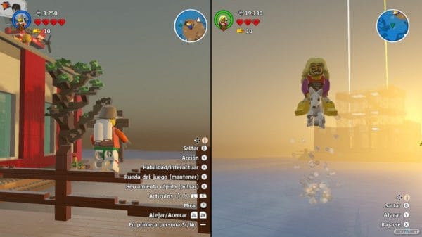 El modo para dos participantes es divertido, salvo cuando te encuentras con algún molesto bug o problemas de optimización. Insistimos, algunos han sido arreglados por medio de la actual versión de LEGO Worlds y es probable que otros temas sean solucionables en el futuro, mientras que hay cuestiones que quizás sean más complicadas de solventar. Nos tememos que Nintendo Switch no podrá mover mucho mejor este título multiplataforma, a no ser que sus creadores inviertan un tiempo considerable en su optimización. Lo comentábamos en el apartado técnico; volar más rápido que la velocidad de generación del mundo es algo muy molesto en el modo local a pantalla dividida.