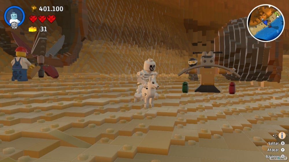 Desde un primer momento entra por los ojos. Los mundos son grandes, las construcciones variadas, los personajes, en apariencia, tan divertidos como siempre. Marchas a explorar los coloridos mundos y no puedes hacer otra cosa que maravillarte. O eso es lo que sucede durante las primeras horas. Estuvimos esperando varias semanas por la prometida actualización de LEGO Worlds, sin saber si solucionaría todos los problemas que nos encontramos, con la sensación de que estábamos ante un producto inacabado. Sufrimos numerosos «cuelgues», errores que no nos han permitido avanzar en un mundo, hemos visto como nuestro personaje no quería continuar moviéndose sin motivo alguno (sin posibilidad de reiniciar su posición), o cómo las luces de una mazmorra, pese a estar ahí, dejaban de iluminar, haciendo tortuoso nuestro avance. ¿Qué ocurrió tras la actualización? El juego se volvió más estable, más fluido. La tasa de imágenes por segundo (FPS) mejoró bastante, a cambio de una ligera disminución de la resolución, sobre todo en las secciones acuáticas, donde ahora podemos movernos con fluidez. Pero no todo fue resuelto.