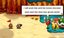 Pero si algo de verdad enciende los Mario & Luigi son sus guiones. El humor con situaciones disparatadas en laaaargas secuencias de diálogo es una constante, y Superstar Saga se beneficia de su ambientación en el Reino Judía. La saga Mario no se caracteriza precisamente por una mitología profunda y coherente, pero cambiar el Reino Champiñón, con los mismos castillos y Toads que hemos visto decenas de veces, por una nueva localización y personajes es muy refrescante y distingue a Superstar Saga no solo entre los Mario RPGs, sino de la franquicia en general. El Reino Judía merece una segunda visita… y el juego nos la da, de la mano de un valiente Goomba.