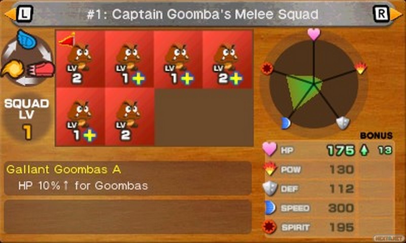 Esta vez, los protagonistas son los esbirros de Bowser (Goomba, Koopa, Boo…) quienes, desperdigados por todo el Reino Judía, se embarcan en la misión de rescatar a su amo Bowser y el resto de esbirros, bajo influencia de la Bruja Jijí. Aunque nunca llegas a controlar directamente a ninguno, ya que se trata de un juego de estrategia en el que las batallas se desarrollan automáticamente en tiempo real. Nosotros elegimos la formación de ocho esbirros que se enfrentará a los enemigos. Los hay de tres tipos: infantería, aviación y artillería, relacionados en un triángulo de poder. Tendremos que decidir qué tipo de unidades serán más ventajosas para formar una cuadrilla equilibrada, aunque otros factores entran en juego: un Shy Guy es especialmente efectivo contra un Lakitu, por ejemplo. Formar una tropa efectiva no siempre es tarea fácil, ya que nos enfrentaremos a combinaciones de enemigos de todo tipo, y pronto se torna imprescindible diseñar una específica para cada batalla (aunque sea mediante el ensayo y error) en vez de arramplar siempre con la misma.