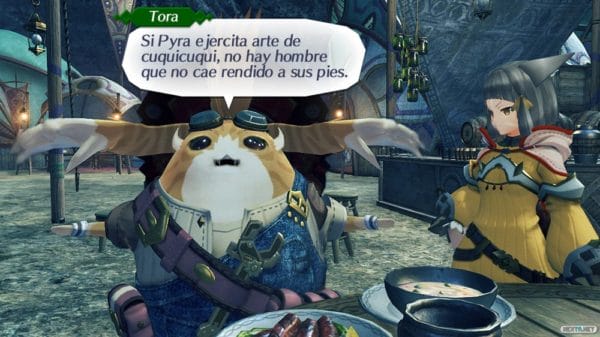 ¿Y el doblaje? La versión a la que hemos tenido acceso solo contaba con doblaje en inglés, estando disponible para su descarga en japonés a partir del día de lanzamiento. En lo personal, habría preferido un millón de veces disfrutar de las voces originales, pues los actores de doblaje nipones suelen transmitir un sentimiento en este tipo de juegos, que el doblaje al inglés de Xenoblade Chronicles 2 mucho nos tememos que no llega a lograr. En ocasiones la voz de Rex elegida para Occidente debería ponerle más emoción al asunto… por otro lado, he de reconocer que me ha gustado jugarlo con el doblaje en inglés para poder comprobar el contraste entre los textos españoles y la traducción inglesa, que diríamos que debe ser más fiel al original por algunos ligeros detalles que se escapan de las conversaciones, algo que no es debido a una mala localización al español, sino a factores como el tiempo que debe estar un texto en pantalla y la media de palabras que podemos ser capaces de llegar a leer durante ese tiempo. Cosas de localización.