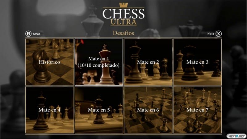 Para los más expertos que quieran llevarse su juego de estrategia favorito a todas partes, éste dispone de un modo desafío único y muy retador. Este modo desafío dispone de distintas pruebas como realizar jaque mate en una partida ya comenzada, pero eso sí, en los turnos que el juegos te propone. Mate en 1, en 2, en 3 y hasta 7, siendo las partidas propuestas bastante complicadas, y que nos llevan mucho tiempo de meditación para poder dar en el clavo con la solución del puzle. Además, dicho modo también dispone del apartado histórico, que trata de resolver partidas de ajedrez reales de ajedrecistas profesionales tal y como las resolvieron ellos. Este modo es, bajo mi punto de vista, el más complicado de todos, pero a su vez el que más sorprende.
