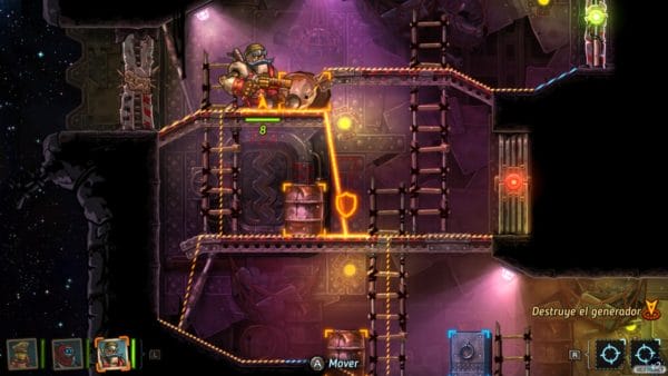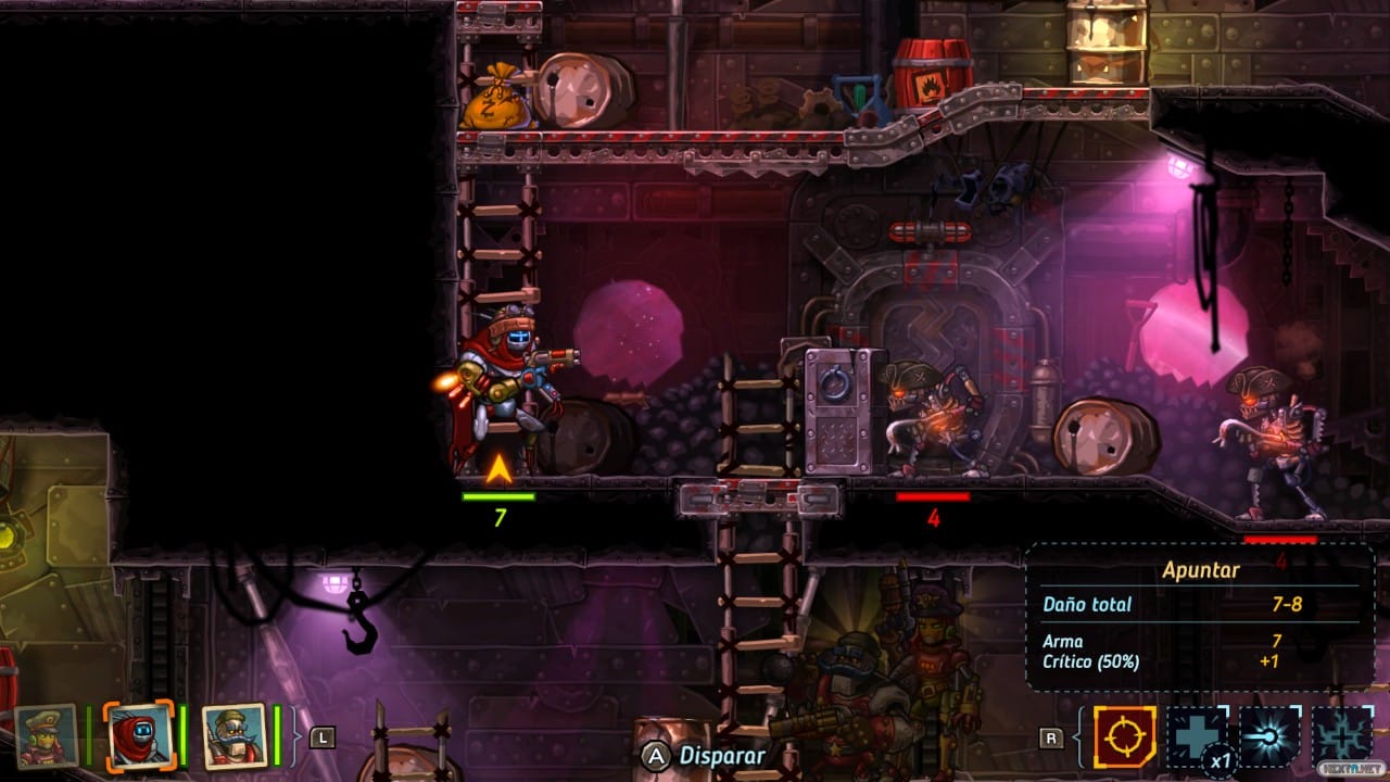 La historia quizá no sea demasiado compleja, pero se compensaba con los diseños y personalidades únicos de cada personaje, desde la capitana Piper Faraday, pasando por su segundo de a bordo Seabrass, hasta llegar a los diferentes steambots adicionales que podemos reclutar a lo largo de nuestra aventura, como el fornido Ivanski. Y, por supuesto, no podemos olvidarnos de los temibles jefes finales de cada mapa, que suponen un auténtico reto por sus poderosas habilidades y gran cantidad de puntos de salud. Y si a ello queremos sumarle la opción de cambiar de dificultad en cualquier momento, podemos convertir cada nivel en una odisea que será difícil de superar. Todo ello sigue estando presente en esta versión para Nintendo Switch, pero con un impresionante lavado de cara y gráficos en alta definición.
