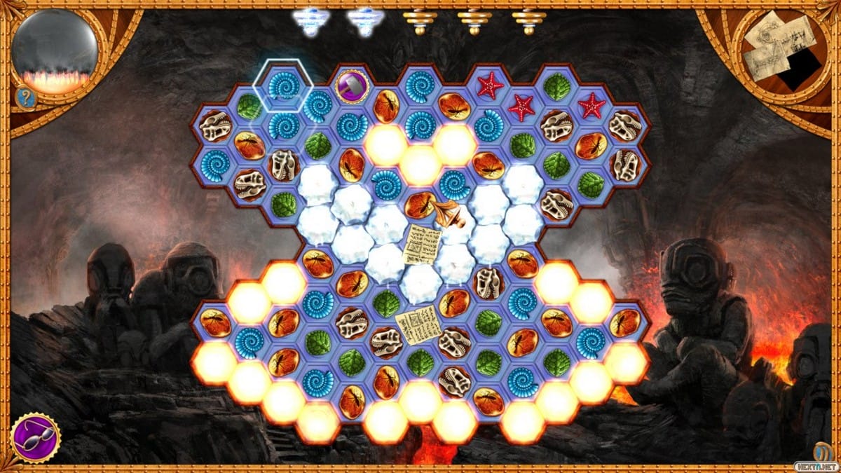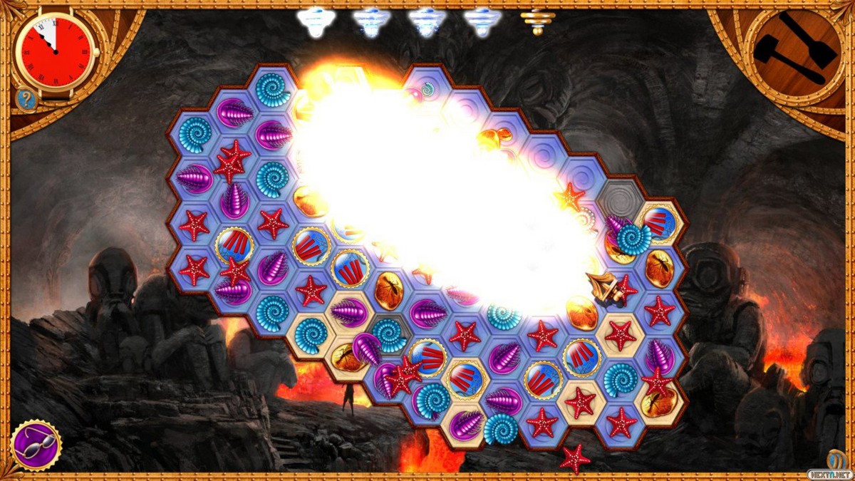 Construir un objeto clave es lo que define la trama en cada uno de los 18 capítulos que componen el modo aventura, del cual todo hay que decirlo, está repleto de incoherencias. Es un hecho que el apartado narrativo del género puzle no acostumbra a ser una de las fortalezas de un título Match-3, y en el caso de Azkend 2: The World Beneath la historia hace más aguas que la famosa obra de Julio Verne en la que tanto se inspira. El proceso de fabricación de cada objeto se repite de forma cíclica en cada capítulo para así obtener artefactos como: una brújula, un engranaje, una bomba de dinamita. Vamos, lo indispensable para cualquier marinero perdido en un mundo de fantasía bajo el mar. La obtención de estos artefactos siempre viene justificada por la trama, pero de una forma aparentemente improvisada, como sacada de la manga y en muchos casos sin aprovechar los elementos mostrados en las ilustraciones, las cuales representan mucho mejor las bondades de esta aventura.