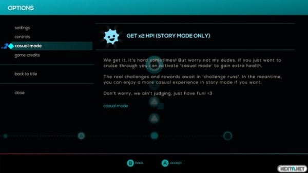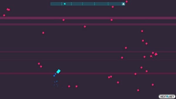 Para superar los niveles debemos aguantar hasta el final de la canción mientras esquivamos un sinfín de obstáculos de color rosa que se interponen en nuestro camino. Dependiendo del nivel, tenemos más o menos resistencia, aunque por lo general podemos perder 3 puntos de salud antes de quedarnos sin una vida (de las cuales tenemos 3 por nivel). A excepción de los niveles de jefes, cada fase tiene 3 puntos de control aproximadamente, aunque aún así nos parecerán pocos. Los controles son los siguientes: nos movemos con el joystick o con los botones direccionales, y podemos esquivar con el botón B; cabe destacar que durante esta acción somos invencibles. La mecánica de la jugabilidad y los controles son súper simples, sin embargo, durante nuestras aventuras, nos encontramos con pasajes musicales como el que podéis ver a continuación: