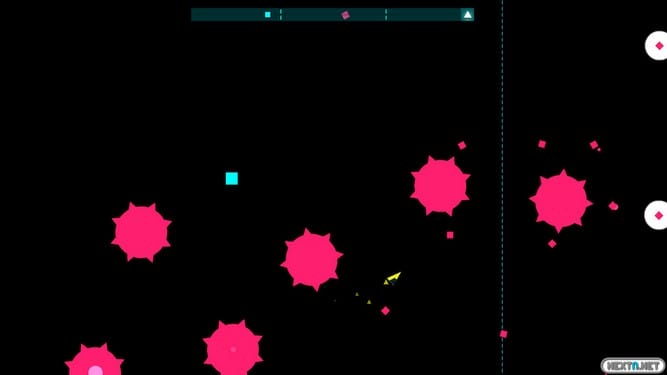 Esto provoca que la jugabilidad se vuelva mucho más compleja y sea capaz de engañar al jugador, pues es casi como jugar a un juego rítimico al revés, sobre todo si tenemos en cuenta que no debemos esquivar al ritmo y que en la pantalla hay algunas «zonas seguras» donde podemos permanecer sin movernos. Como consecuencia, aunque no lo recomendamos, podemos jugar sin necesidad de escuchar la música, algo que resulta muy interesante si tenemos en cuenta que nos encontramos ante un juego musical.