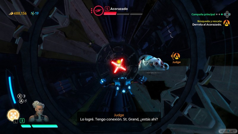 Para empezar, ofrece un uso diferente de los juguetes: ya no son figuras estáticas que dejar en un portal, sino que forman parte activa del juego. Tanto, que los acoplamos directamente al mando (Joy-Con Grip), en un accesorio un tanto aparatoso pero ligero, sobre el que se enganchan los pilotos, las naves y las armas que podemos cambiar en cualquier momento a lo largo del juego, con solo pulsar el botón de pausa. Con la nave, los dos pilotos y las dos armas que vienen incluidas en el Starter Pack podemos jugar la totalidad de la historia, pero si tenemos más armas, naves y pilotos tendremos una experiencia más completa y variada. Esto tiene sus «peros» y «matices», que cubriremos antes de lo que, en nuestra opinión, marca la verdadera diferencia en Starlink: una jugabilidad muy cuidada, divertida y con una gran profundidad que lo acerca mucho más al RPG que al arcade de acción.