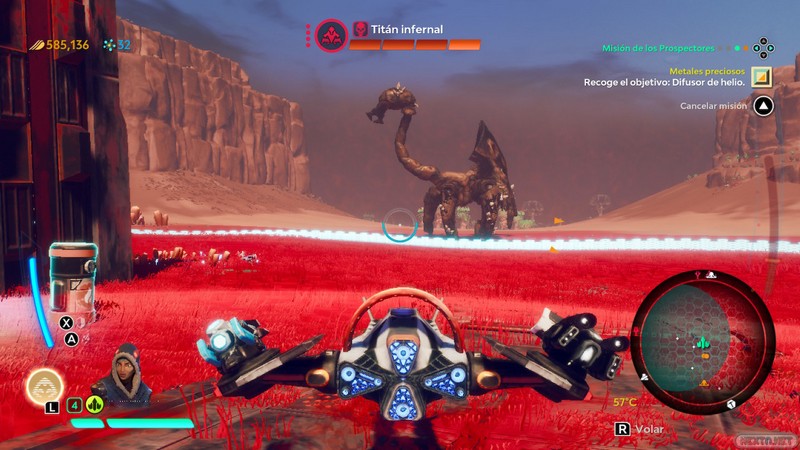 Llegar al final del juego es una tarea relativamente sencilla, pero conseguir el 100% en todos los planetas requiere muchísimas horas de juego. Y lo más probable es que quieras dedicárselas, porque la variedad de objetivos y tareas es muy amplia, explorar nuevas zonas del mapa siempre es satisfactorio, visualmente es muy atractivo y aunque los combates pueden hacerse repetitivos, siempre mantienen el interés gracias a las amplísimas opciones de personalización y unos controles en general intuitivos. La libertad de acción durante la mayor parte del juego es quizás lo más refrescante dentro del género de mundo abierto, y obliga al jugador a plantearse activamente sus estrategias: lanzarse a por los Titanes de los planetas del «borde exterior» sin mejorar bien las armas y sin mucha idea de cómo derrotarlos es casi un suicidio, así que mejor ir a por los Titanes más pequeños de los planetas iniciales y «farmear» un poco de experiencia y habilidad, y de paso, acumular mejores recursos para poder construir más bases que nos ayudarán en los planetas más peligrosos.