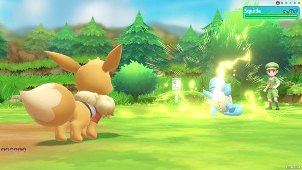 Nuestros compañeros de aventura, no solo son especiales por poder aprender Técnicas Secretas, sino también en combate. Cuentan con unas características «inmejorables» (así lo dice la función «juez» del título) para cada atributo, siendo calificados de «Potencial extraordinario». Toca decir que no evolucionarán durante el juego, pero también que no les hace falta para nada, pues pueden aprender una serie de técnicas que harán que te olvides del resto de Pokémon de tu equipo. Concretamente Eevee, es de lo más versátil (más de la cuenta), contando con ataques para derrotar a cualquier tipo incluso de un golpe. Si te enganchas a hacer cadenas de capturas, subirás tanto de nivel a tu Eevee o Pikachu, que podrías tener las cosas demasiado fáciles a la hora de enfrentarte a otros entrenadores sin tener siquiera que cambiar de Pokémon.