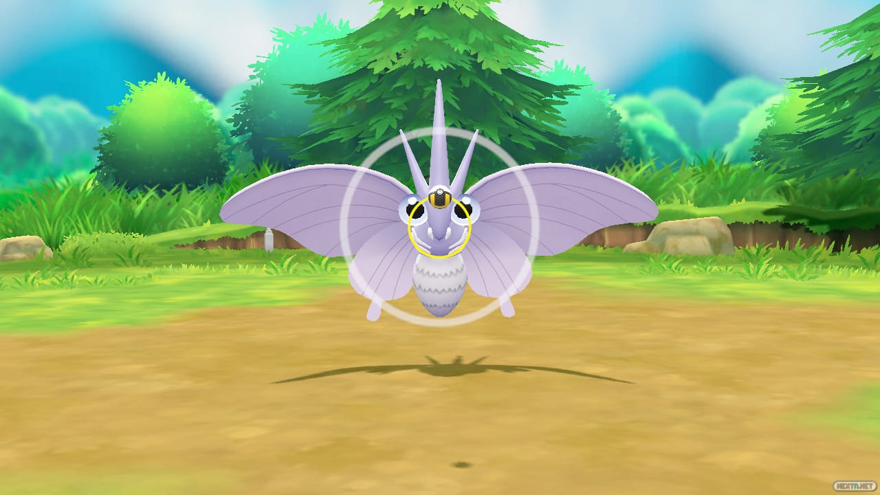 Partimos de los orígenes, de los videojuegos que dieron inicio a la saga, y eso de por sí significa simplificar muchas cosas. Contamos con 151 Pokémon con los que combatir y capturar, únicamente los de la primera generación, pero las cosas son diferentes. Por ejemplo, en los videojuegos originales, meterte en la hierba significaba que en cualquier momento, y de forma aleatoria, un Pokémon aparecería para atacarte, teniendo que hacerle frente con tu equipo, a fin de debilitarlo, tratando hacer todo lo posible para no derrotarlo, para a continuación tratar de capturarlo… a no ser que ya lo tuvieras o no te interesara. Fruto de esos combates, nuestros Pokémon obtenían experiencia, subían de nivel, aprendían nuevos ataques, evolucionaban… La diferencia principal con Pokémon Let’s Go es que puedes olvidarte de esos combates aleatorios contra Pokémon salvajes. De igual forma que ocurre en Pokémon GO, no se trata de encuentros totalmente aleatorios, sino que cuando veas un Pokémon podrás intentar capturarlo. Eso es, intentar capturar, pues los hay verdaderamente escurridizos, o bastante dóciles. La mecánica de captura se basa en la de Pokémon GO; simplemente tienes que lanzar una Poké Ball tratando de acertar en el centro de un área esférica que se contrae, teniendo más opciones de conseguirlo si aciertas en el centro cuando el círculo sea más pequeño. El color de la misma también influye: si es de color rojo, tienes prácticamente nulas posibilidades, mientras que estas aumentan enormemente si es de color verde, y aquí es donde entran en juego los tipos de Poké Ball (normal, Super Ball, Ultra Ball, Honor Ball y… puede que sepas que existe otra infalible y de un único uso), mientras que las bayas hacen casi el mismo efecto que en Pokémon GO. Así, la baya Frambu facilitará la captura, la Latano que se estén más quietos, mientras que la Pinia, en este caso, hace que los Pokémon entreguen más objetos al ser capturados.