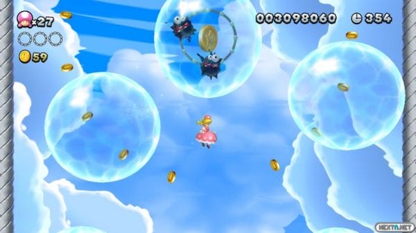 Toadette, sin lugar a dudas es la novedad más destacable del título. No solo se puede beneficiar de todos los potenciadores del juego, sino que, además, cuenta con uno exclusivo para ella: la Super Corona. Este nuevo objeto transforma a Toadette en Peachette, lo que le da unas habilidades similares a las del traje de ardilla, pero con una mayor facilidad a la hora de maniobrar en el aire. En el apartado gráfico vemos una pequeña mejora, ya que en modo sobremesa el juego alcanza los 1080p, mientras que en portátil se queda en los 720p del título original. El apartado sonoro se mantiene intacto y con la calidad que ya presentaba en Wii U y, por lo demás, no hay más novedades destacables.