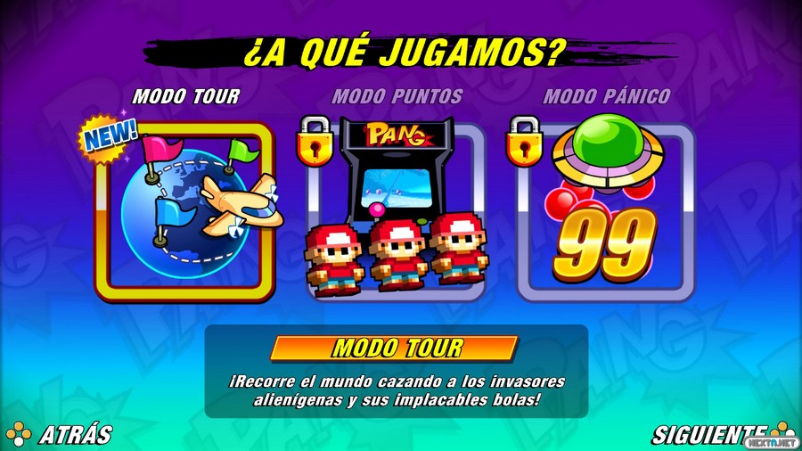 Los extraterrestres han vuelto a invadir la Tierra y están atacando las ciudades con unas enormes bolas. Solo dos personas pueden volver a detener a los malvados invasores, los hermanos Pang. Para ello tienen que coger sus pistolas de ganchos y lanzarse a la aventura por todo el mundo intentando acabar con las bolas antes de que destruyan la Tierra, pero no es tan sencillo como puede parecer, ya que tras lograr salvar cada una de las ciudades atacadas nos vamos a tener que ver las caras con los malvados extraterrestres que están lanzando este pelotudo ataque. Esto será en el modo Tour, que se compone de varios niveles con 15 pantallas cada uno y donde la historia transcurre tal y como ocurría en los anteriores títulos de esta saga. Tras acabar con este modo se nos desbloquea un modo Por puntos donde vamos a poder volver a jugar los niveles pero esta vez sin tiempo y con tres vidas, por lo que tendremos que mostrar nuestra habilidad e intentar llegar lo más lejos posible. El tercer modo de juego es el modo Panic, donde también contamos con tres vidas y tenemos que conseguir la mayor cantidad de puntos en una fase donde no paran de salir bolas.