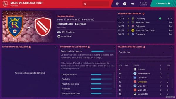 Football Manager no es tan accesible como puede ser FIFA 19. Tácticas, fichajes y partidos implican multitud de aspectos a tener en cuenta, que tenemos que conocer mínimamente para jugar con soltura. Además, el ritmo del juego es lento: cada día del calendario incluye un pequeño tiempo de carga, que puede ser de un segundo entre semana o de varios si hay más partidos por disputarse, y los partidos, aunque podemos seleccionar su velocidad y qué jugadas ver (desde únicamente jugadas de gol al partido entero), son largos.