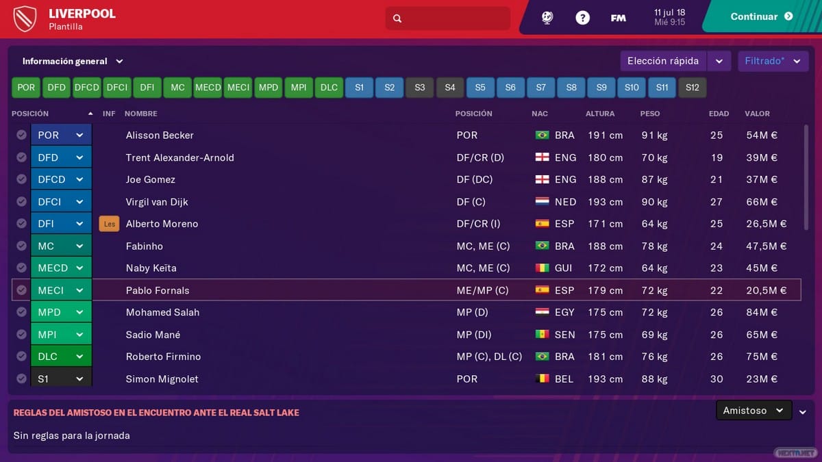 Obviamente, lo que más nos interesa en un juego de fútbol son sus jugadores. Y en Football Manager Touch 2019 hay muchos jugadores. Muchísimos. Tantos que, para asegurar el buen rendimiento del título, el juego nos limita la elección de ligas a tres países con sus respectivas categorías (tranquilos, podemos fichar jugadores de fuera de estas tres ligas. Simplemente no podemos entrenar ahí en esa misma partida). La profundidad del juego en este aspecto es abrumadora: cualquier equipo de la primera división española cuenta, además de con los jugadores de su primer equipo, con la plantilla del filial y del equipo juvenil, además de su cuerpo técnico. Eso sí, no tenemos las licencias oficiales. Así que si sois del Betis, tenéis que jugar con el Real Hispalis… Pero los jugadores siguen ahí.