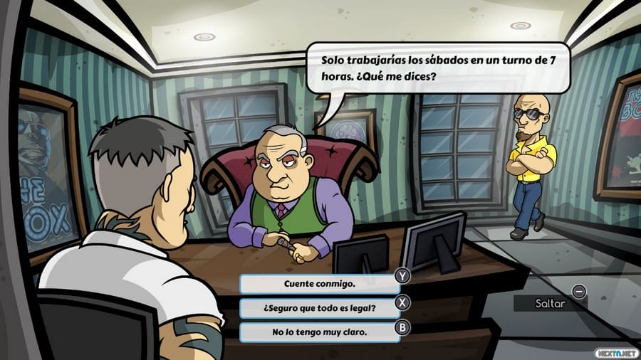 Este es un título a tener en cuenta en Nintendo Switch, una mezcla entre aventura gráfica y novela visual que puede ser un reto para aquellos que les gusta decidir qué ocurre en la historia en todo momento. Según vamos avanzando por la aventura, vamos descubriendo que si no tenemos cuidado podemos vernos en más de un apuro, y que cada acción que realizamos puede hacernos que el juego sea algo más sencillo o que podamos vernos en más de un apuro. Uno de los pequeños fallos que posee Out of The Box es que en ocasiones podemos sentirnos un poco frustrados con la clientela que llegan a la discoteca, ya que hay momentos donde solo aparecen borrachos o menores y no logramos llenar la sala, por lo que podemos llegar a no ganar el suficiente dinero para pagar todas nuestras facturas y acabar muy mal. Entre eso y que a veces hay días donde solo hay que intentar conseguir que entre el mayor número de personas antes de que acabe la noche, por lo que se vuelve un poco repetitivo, hay ocasiones donde quieres dejar de jugar por aburrimiento.
