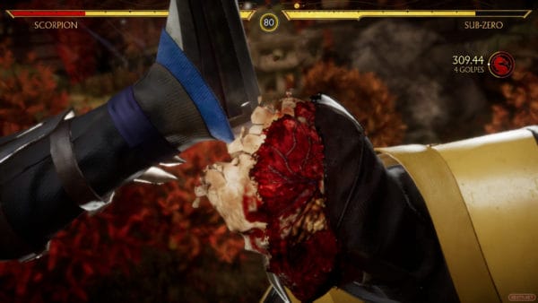 Otra de los fundamentos que no han cambiado desde sus inicios, es el gore. Podemos afirmar que Mortal Kombat 11 es el capítulo más salvaje de toda su historia. Los desarrolladores se han rebanado la tapa de los sesos (nunca mejor dicho) para ofrecernos unos fatalies de lo más despiadados. ¿Sólo fatalities? Los escenas al activar un Fatal Blow son igual de violentas, aunque sin desmembramientos, y también tenemos los brutalities. A no ser que sea fan del gore, alguien que ha visto estas escenas, sin probar el videojuego en sí, fácilmente podría sentir repulsa ante tanta violencia gratuita.