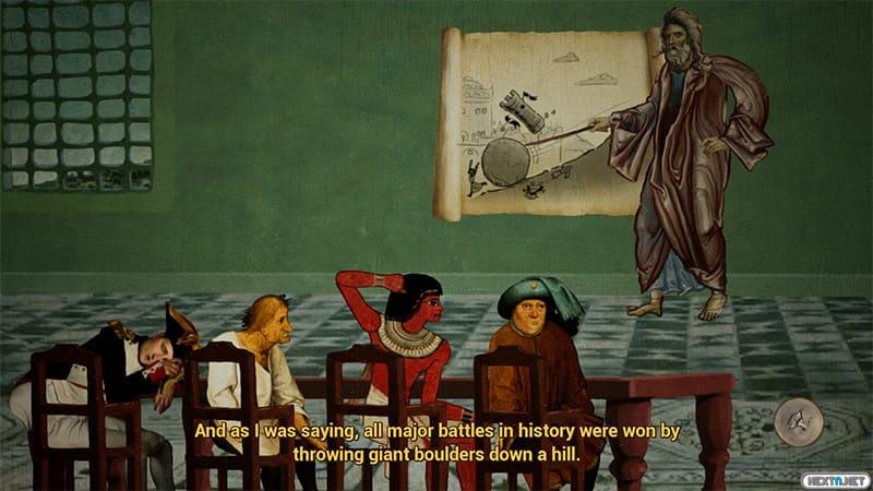 Atlas era, según la mitología griega, uno de los titanes que dirigió el ataque de los mismos contra los dioses del Olimpo, y por ello fue castigado por el mismísimo Zeus a sostener los cielos sobre sus hombros toda la eternidad, las típicas rencillas y represalias entre las antiguas deidades, que no se estaban quietas ya se sabe, cuando en esto de tener un descuido se le cae la esfera terrestre, provocando la reubicación de los continentes y encima la confunde con la piedra de Sísifo (el protagonista del primer juego) que andaba por allí de casualidad. Al darse cuenta de la confusión, y sabiendo lo mal que Zeus se toma el incumplimiento de los castigos eternos, decide dejarse caer por el mundo de los mortales junto a la enorme roca mencionada en busca de la esfera perdida, para contar con ayuda por si alguien le pone alguna pega. Obviamente gran parte de esta leyenda mítica ha sido reinventada por los desarrolladores, pero sirve de excusa para acompañar en esta ocasión al sufrido Atlas en su paseo extralaboral y enfrentarnos a grandes personajes de la historia de la humanidad, embistiendo sin piedad los castillos en los que se refugian para derrotarlos; ya aviso que la trama no tiene ni pies ni cabeza, tan sólo va dirigida a disfrutarla con su humor absurdo y las estudiadas referencias históricas. Hay tres modos principales, la Campaña, que viene a ser como el modo para un jugador, que sigue las aventuras y desventuras del titán y otros ilustres como Van Gogh, Napoleón, Enrique VIII de Inglaterra o hasta el protagonista de el cuadro El Grito de Munch, en una serie de ficticias luchas históricas, el Juego de Guerra, que se parece al anterior pero enfocado a combates de dos a cuatro jugadores, y la Carrera de Obstáculos, una versión simplificada donde se omite el apartado Tower Defense para centrarse en lanzar rocas colina abajo, al tiempo que tratamos de llegar a la meta antes que el resto mientras esquivamos todo lo que pueda entorpecer nuestro paso, desde pequeños muretes o cañones hasta pobrecillas vacas que pasaban inocentemente por allí.