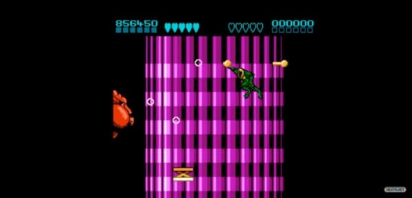 Su amplio repertorio de movimientos y efectos, su BSO cañera (he de reconocer que en más de una ocasión, pasé minutos y minutos escuchando la pista principal, así como el pegadizo -cruack, palmada, cruack, palmada, cruack, palmadax3… – tema que se escuchaba en el menú de pausa), el derroche de carisma de sus personajes, su extremada dificultad, sus mecánicas frescas, variadas y muy divertidas, sus 13 niveles (con algún que otro secreto) y, sobre todo, poder manejar a seres antropomórficos fueron motivos más que suficientes para quedar enganchado a este título desde el primer minuto de juego. Para rematar, esa mezcla entre plataformas y título de desplazamiento lateral, aderezado con un exclusivo sentido del humor, del que me enamoré desde el primer momento como si de una rana a la espera de beso me tratase, lograron situarlo, hasta la actualidad, como uno de mis cinco títulos más queridos. Algo mágico, que posteriormente desembocaría en altas dosis de NESxtalgia, pasaba frente a unos ojos ávidos de nuevas experiencias y no lo podía dejar pasar, esta vez no.