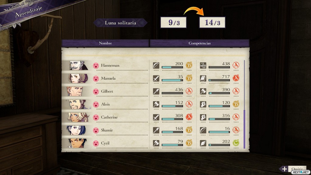 Que nuestro personaje sea profesor en la Academia de Caballeros de Garreg Mach, es un factor que justifica a las mil maravillas los nuevos elementos jugables que presenta el juego. Para empezar, tenemos que organizar diferentes jornadas lectivas a lo largo de cada mes, donde contamos con una serie de fondos para costear nuestras actividades y comprar todo lo necesario para las batallas. Cada lunes tenemos la posibilidad de realizar tutorías, encargar tareas o modificar las metas de nuestra clase; nuestro rol como profesor es asesorar a nuestros aliados, pudiendo determinar el enfoque de sus estudios (lo que permite hacer que una de nuestras unidades se incline por ser mago, por ejemplo). Sin embargo, nosotros también debemos aprender y mejorar, subiendo nuestro nivel como docente, lo que nos desbloquea nuevas posibilidades, como mejorar las armas o tener más puntos de actividad para las fases de exploración. Sí, habéis leído bien: podemos explorar las instalaciones de la academia.