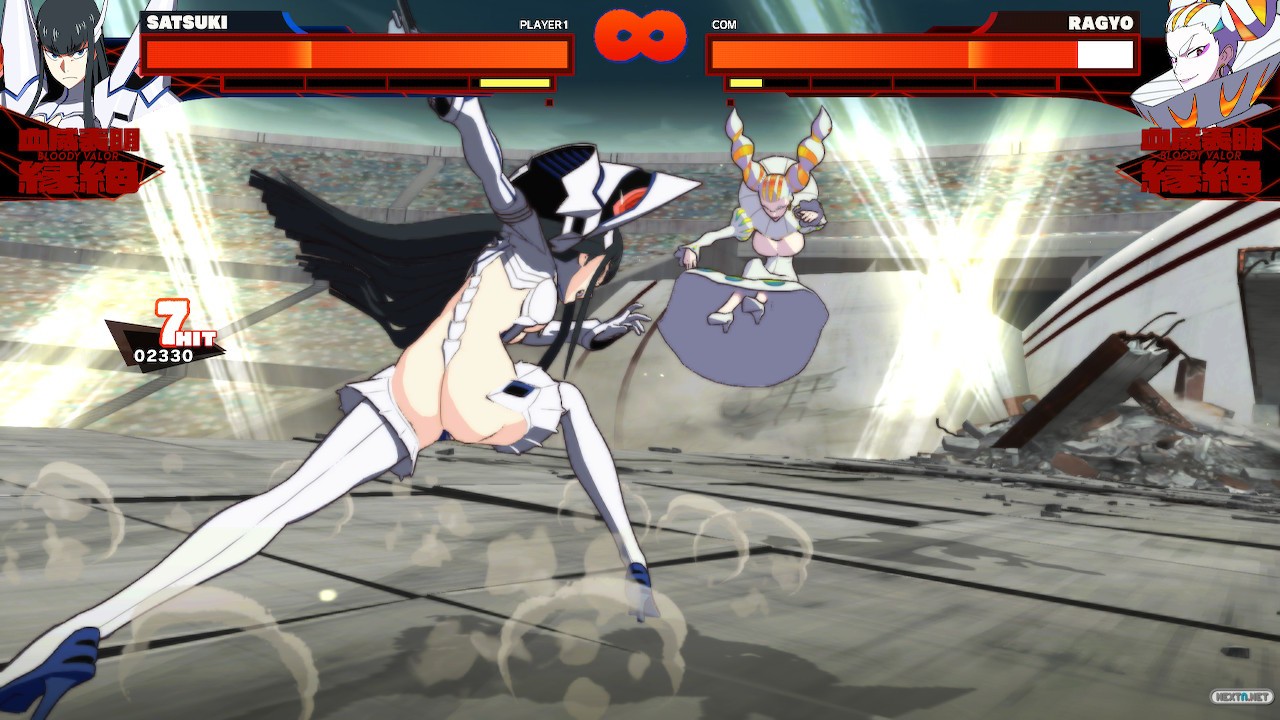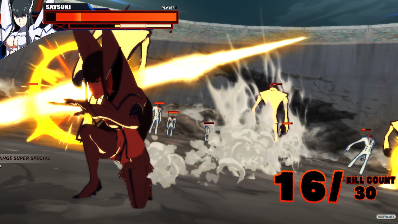 Y aún así, con unos recursos «tan limitados», se las apaña para ofrecer un gameplay lo suficientemente profundo como para entretener y representar a la perfección a cada uno de los luchadores, a pesar de que algunos no tuviesen mucho tiempo de combate con esas versiones de los trajes en el anime y siempre diferenciándolos todos lo suficiente como para que sean únicos. Y precisamente, por representar bien y adaptar a personajes que tienen poco tiempo de pantalla se nota aún más lo limitado del plantel de personajes. Al recordar el anime de Kill la Kill, uno puede llegar a pensar que en realidad no hay muchos más personajes que pudiesen añadirse para combatir. Quizás Mako con su uniforme de dos estrellas o Tsumugu son las dos primeras grandes faltas que se le vienen a uno a la cabeza, pero ambos están planeados como contenido descargable gratuito para el día de salida, (en realidad Tsumugu viene en el Ultimate Double Naked DTR junto a Aikuro). Pero entonces uno se da cuenta de que de los cuatro de élite, tan solo está el uniforme de combate de tres estrellas básico, sin ninguna de las dos versiones mejoradas o las versiones de Nudist Beach del final de la serie, ni las versiones Senjin o Shippu del Senketsu de Ryuko o el Junketsu de Satsuki. Vamos, que hay material de sobra para sacar distintos personajes aunque se repitiesen luchadores y fuesen diferentes entre sí, pero Kill la Kill: IF solo nos ofrece los básicos. Y creo que de haber más luchadores de base ayudaría a poder contar una historia más larga, trabajada y con mayores sorpresas.