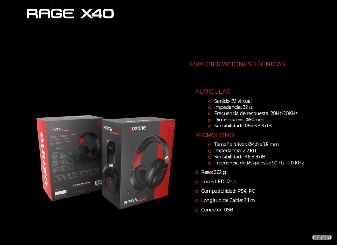 Los auriculares gaming Rage X40 son unos cascos pertenecientes a la gama de entrada, compatibles con Nintendo Switch, que logran destacar para bien en aspectos como la ergonomía, el diseño, la sobriedad de sus líneas y una relación calidad-precio que, por menos de 40 euros, nos ofrecen unas especificaciones técnicas muy a tener en cuenta. En contrapartida, dicho periférico renuncia a una iluminación LED más espectacular, una botonera situada en el cable USB y a cualquier tipo de sistema de cancelación de ruido.