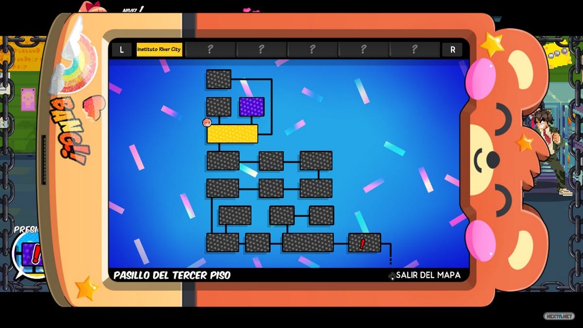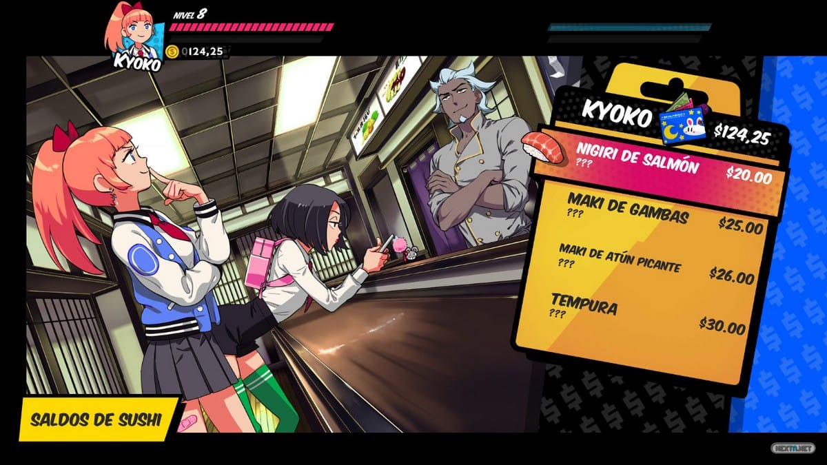 Un viaje que nos lleva a recorrer diversas localizaciones e incluso a conocer algunos personajes presentes en anteriores entregas de la saga, haciendo las delicias de cualquier fan de franquicia. No obstante, conviene recalcar que River City Girls no es un beat´em up al uso, ya que toma ciertos elementos de otros géneros, como los RPGs, para situarse en un medio camino que le sienta como anillo al dedo. Nuestras protagonistas suben de nivel, mejoran sus estadísticas e incluso cuentan con la posibilidad de comprar nuevas técnicas (repertorio que, por suerte, es algo diferente para cada una de nuestras heroínas). Por otro lado, contamos con un mapa con el que hacer más sencillo el cumplimiento de las diversas misiones que nos son encomendadas. Misiones que, por cierto, nos hacen tener que patear el mapa al completo e incluso volver sobre nuestros pasos, tras desbloquear aquellas zonas inaccesibles hasta entonces. Para rematar, podemos comprar diversos ítems con los que mejorar nuestras estadísticas, incluido un número muy numeroso, valga la redundancia, de alimentos con los que poder recuperar nuestra barra de vida. Si bien es cierto que todo está bastante delimitado, River City Girls nos presenta, esencialmente, una aventura de mundo abierto a escala reducida.