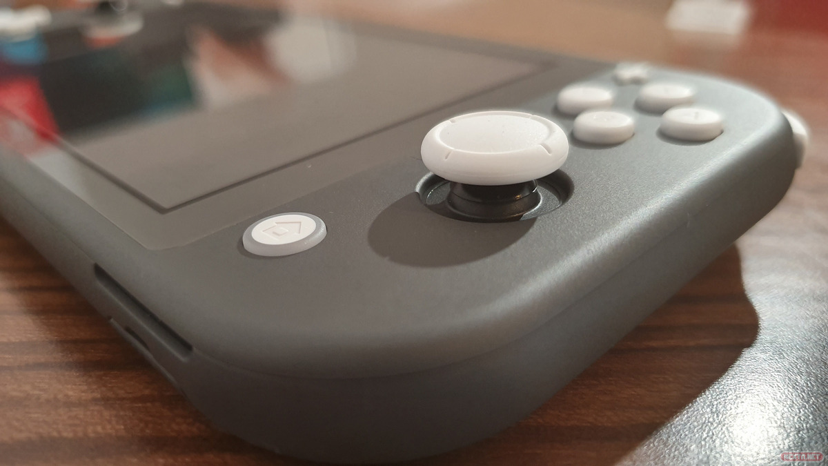 - Palancas analógicas: Las que encontramos en Lite son prácticamente idénticas a las instaladas en los Joy-Con, en apariencia y funcionamiento, aunque está por ver si funcionarán bien con el tiempo. Una indudable ventaja del modelo clásico es que si se estropea un mando puedes sustituirlo por uno nuevo, mientras que en Lite tendrás irremediablemente que llevar la consola a reparar, por lo que cabría esperar que Nintendo debe haberse esforzado en la calidad de las mismas. Pese ha que por la red se escuchan casos en los que han podido dar problemas, es muy pronto para ver si las palancas de la Lite nos decepcionarán con el tiempo. Dado el color claro de las almohadillas, con respecto a las instaladas en los Joy-Con, se ensucian con mayor facilidad.