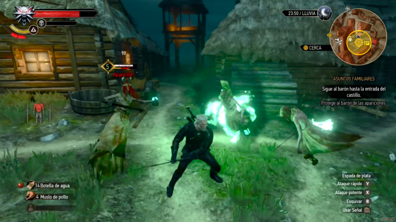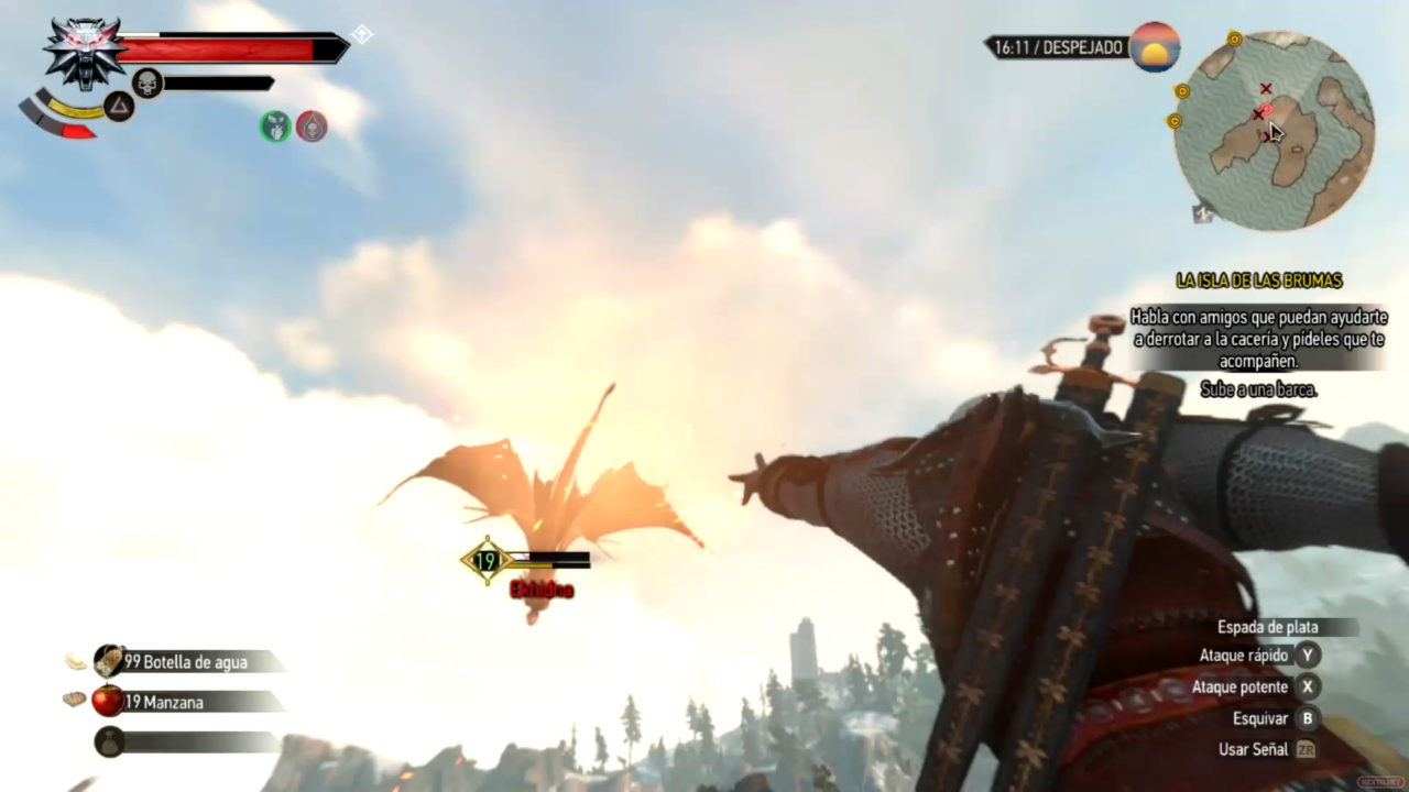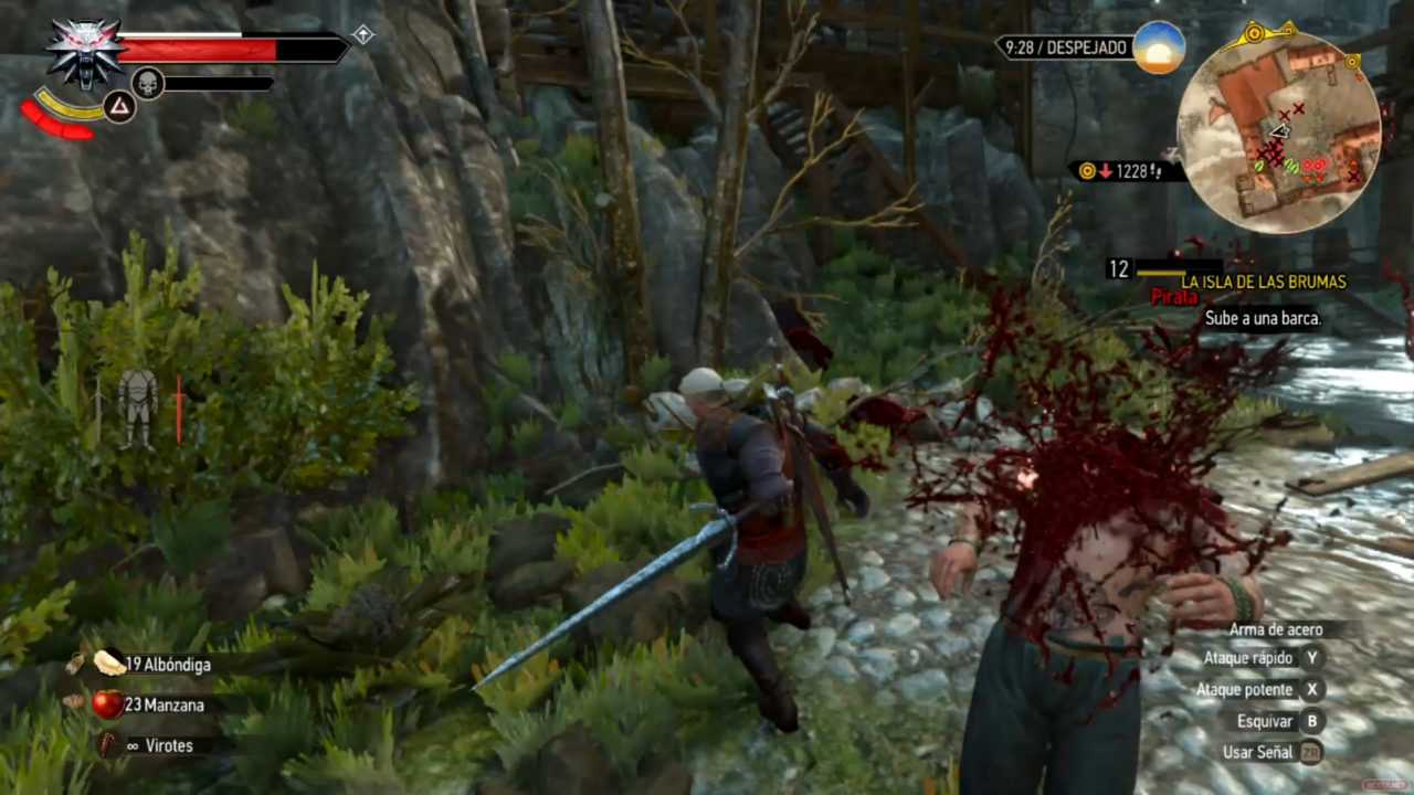 Como RPG, dada mi experiencia previa con el género, he de decir que es de los que menos me ha exigido a la hora de complicarme escogiendo equipamiento o gestionando el árbol de habilidades. ¿Y por qué? Pues básicamente porque nuestro querido Geralt de Rivia es un luchador de primera. El sistema de combate, aunque simple, es de lo más complaciente. Los golpes de nuestro protagonista conectan con contundencia, esquiva de maravilla y cuenta con habilidades que podríamos resumir con un «mola mucho utilizar». Es como una especie de «Jedi medieval» que da gusto manejar. Espera… ¿sistema de combate simple? Existen diferentes tipos de enemigos, con a su vez distintos patrones de ataque. Los humanos se enfrentarán contra nosotros con armas de mano, a veces con escudo, o con ballestas a media distancia. Cuando llevas ya una determinada cantidad de horas a las espaldas, verás que no son complicados de derrotar, a menos que sean numerosos y de más nivel que nuestro personaje, y con los monstruos pasa un poco igual, mientras que los enemigos mayores la cosa se pone algo más complicada, con ataques mágicos o de área que nos harán recurrir más a la esquiva como estrategia. Es decir, el sistema de combate es muy disfrutable, pero no esperes encontrar la profundidad de otros títulos que plantean enfrentamientos similares.